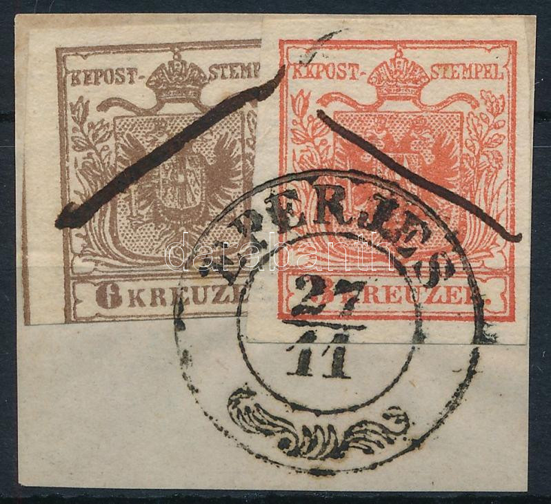 1850 3kr + 6kr HP I "EPERJES" + tollvonásos érvénytelenítés