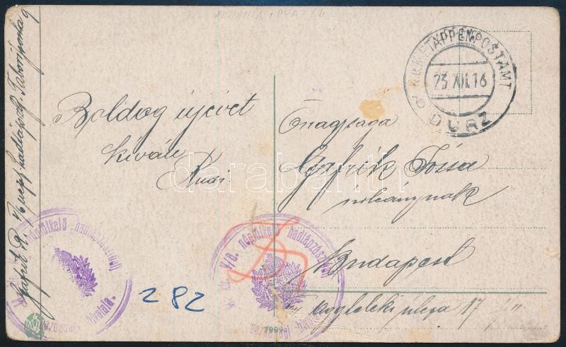 1916 Field postcard "M.kir. V/6 népfölkelő hadtápzászlóalj gazdasági hivatala" + EP DURZ b...