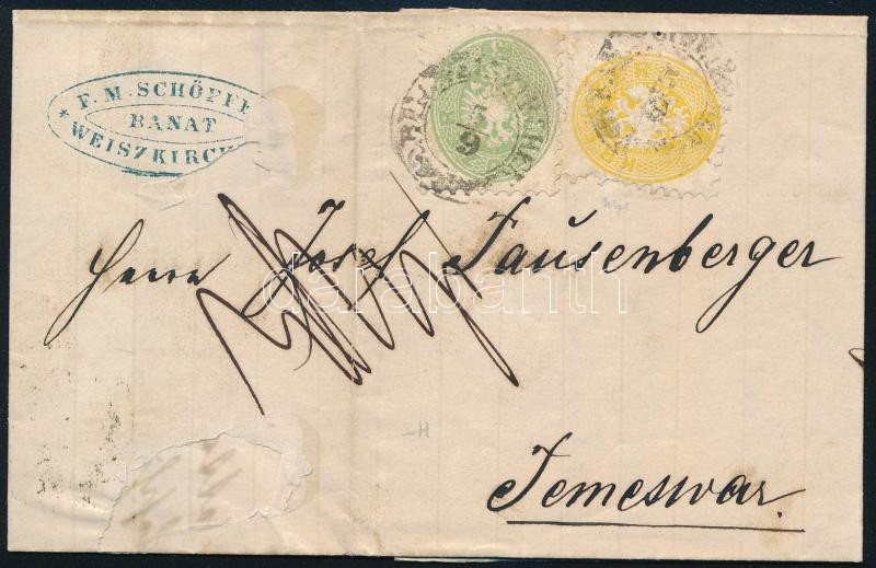 2kr +3kr on domestic cover "BAN. WEISSKIRCHEN" - Temesvár 2kr +3kr távolsági levélen "...