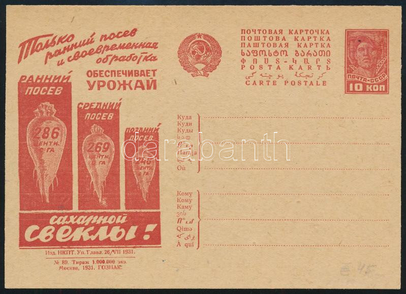 Soviet Union 1931 Unused propaganda PS-card Szovjetunió; 1931 Propaganda díjjegyes levelezőlap, hasz...