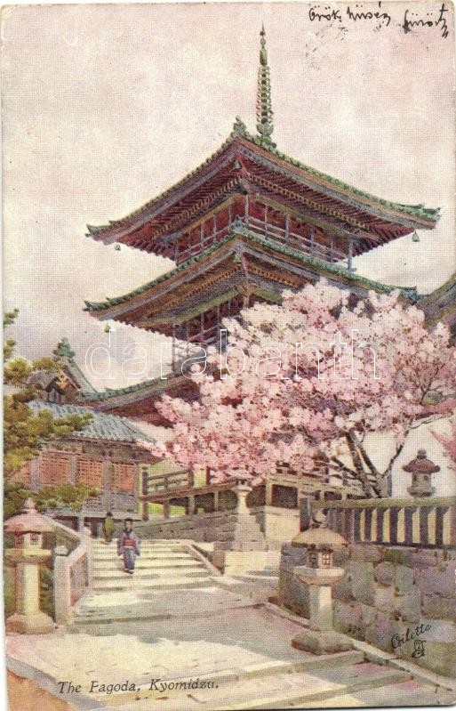 Kyoto, Kiyomizu-dera (Kyomidzu), Pagoda; Raphael Tuck & Sons Oilette "Flowers and Gardens of Japan" Serie II. 7917.
